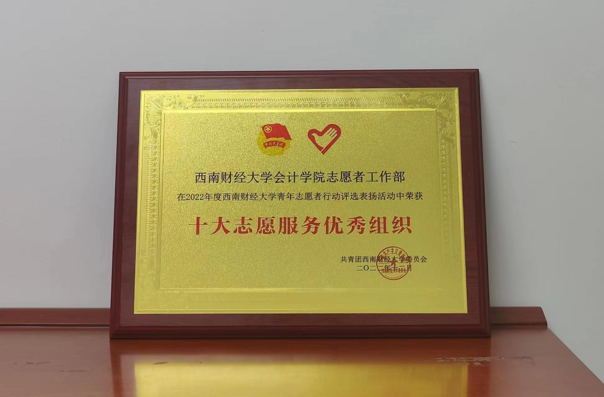 3月17日下午两点,校团委书记王偞婷老师为西南财经大学2022十大志愿服务优秀组织及十大志愿服务优秀榜样颁奖。会计学院志愿者工作部在2022年度西南财经大学青年志愿者行动评选表扬活动中荣获2022十大志愿服务优秀组织。 会计学院2019级学生钟依汝同学荣获2022十大志愿服务优秀榜样。