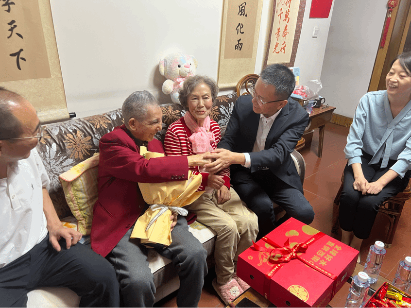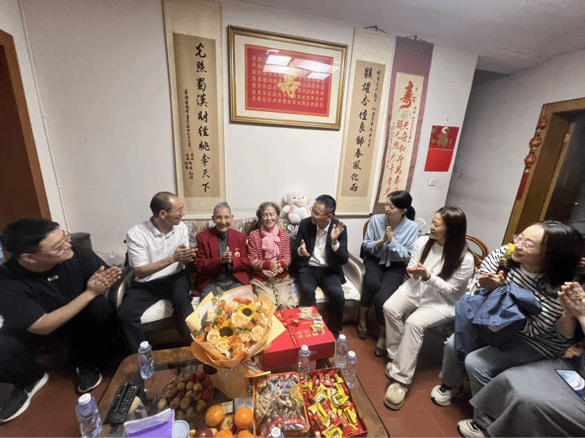此次登门贺寿,既是学院“尊师敬老”传统的延续,更让百岁老教师感受到家一般的温暖,也为校园增添了浓浓的喜庆与温情。(文、图/丁泽宁 审稿/唐雪松 刘晓彬 曹昱)
