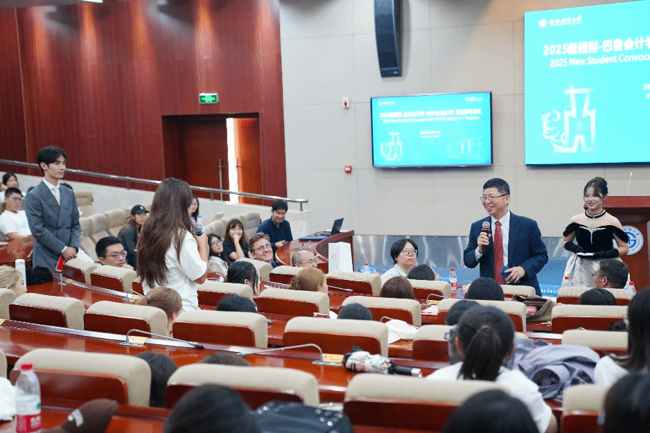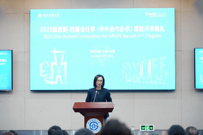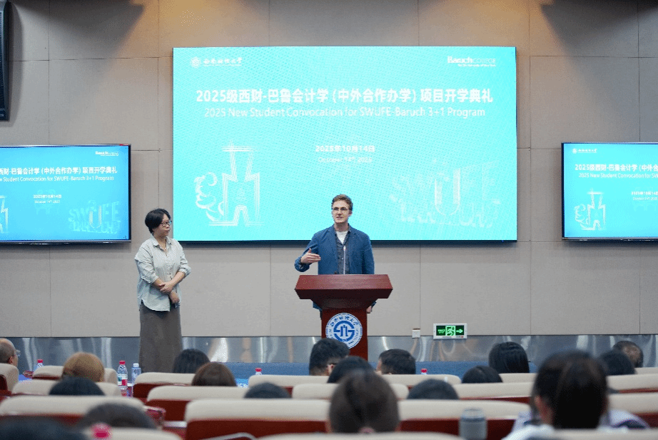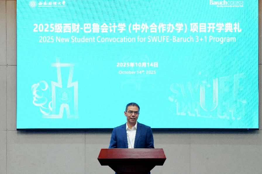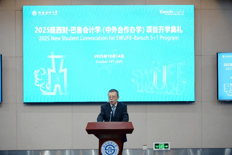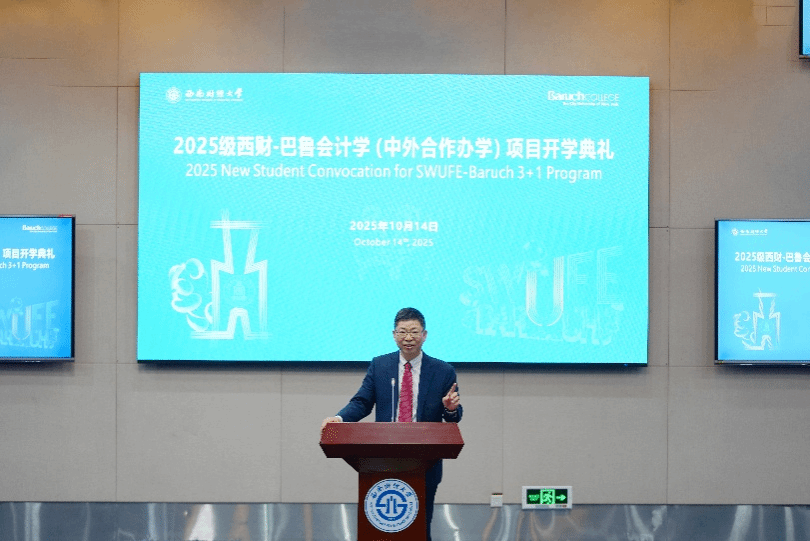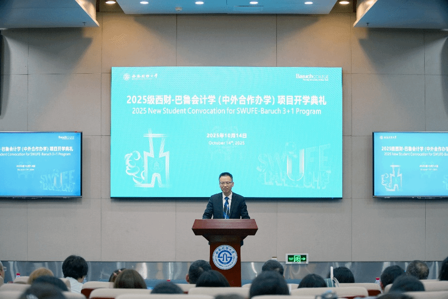10月14日下午,西南财经大学-纽约城市大学巴鲁学院会计学(中外合作办学)项目2025级新生开学典礼在弘远楼101会议室隆重举行。党委常委、副校长李志生、国际交流与合作处处长王偞婷、学生工作部部长许晓卉、教务处副处长兼实验教学管理中心主任王凯莅临指导,前纽约城市大学巴鲁学院教务长及前威斯曼国际商务中心主任Myung-Soo Lee、国际项目副主任Aloe YAN、巴鲁学院客座助理教授Peter Kramer,会计学院院长唐雪松、党委副书记张太富、副院长易阳、项目管理团队老师以及2025级项目全体新生参加了本次典礼。