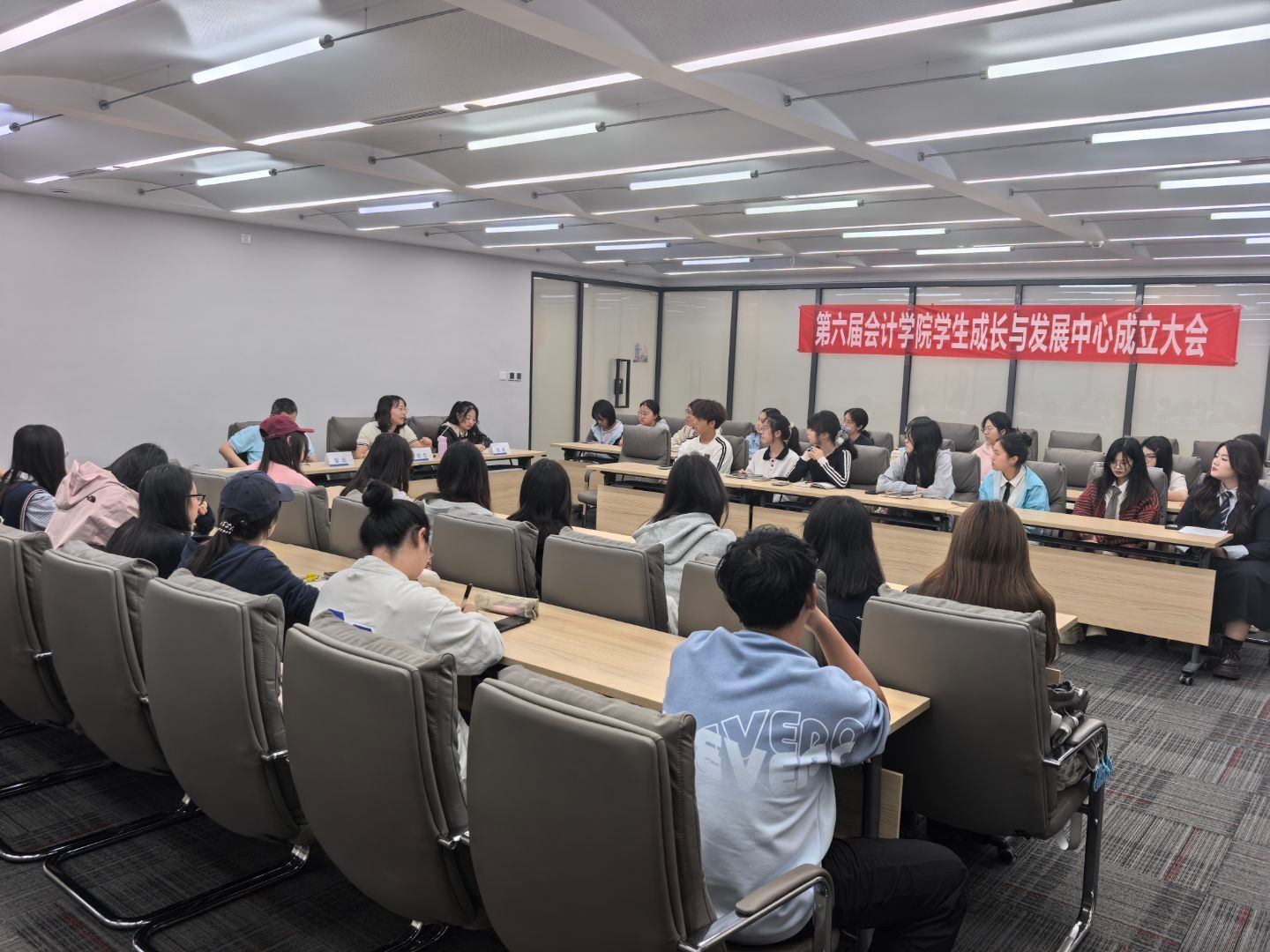 2025年10月17日下午,西南财经大学会计学院第六届学生成长与发展中心成立大会在诚正楼650会议室顺利召开。中心指导老师覃莹、肖苒、邹涛出席大会,与新老成员共同见证新学年工作的开启。