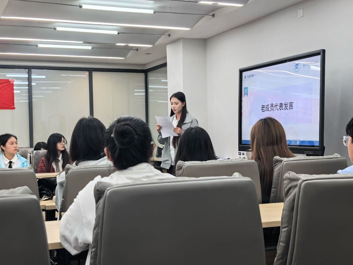 指导老师覃莹在致辞中对第六届中心的成立表示热烈祝贺,并欢迎新成员的加入。她向全体成员提出三点期望:一要发挥“财经纽带”作用,精准对接同学需求,强化服务意识,做好学院与学生之间的沟通桥梁,在服务中锻炼自我、成就价值;二要立足“实干操盘手”的定位,积极将专业知识转化为实际服务,勤于思考、勇于提问,在工作中保持热情与创造力;三要注重实效、锤炼能力,在服务同学的过程中不断提升综合素质,实现个人成长与中心发展的双赢。