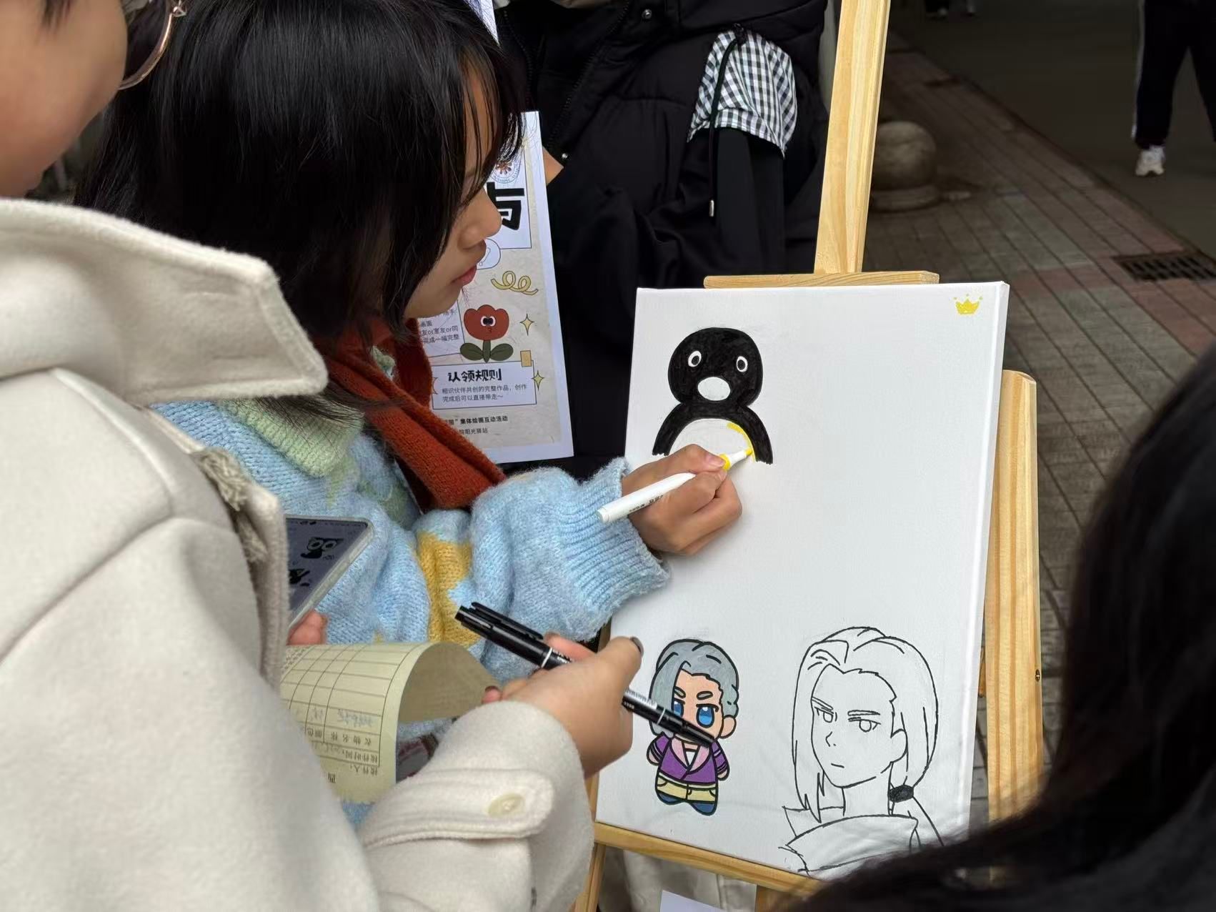11月25日,会计学院阳光驿站组织的“绘聚心光·共暖校园”集体绘画互动活动于五谷堂门口顺利举行。正值期中备考关键期,活动以低门槛艺术共创为载体,为同学们搭建了释放压力、凝聚善意的情感出口。
