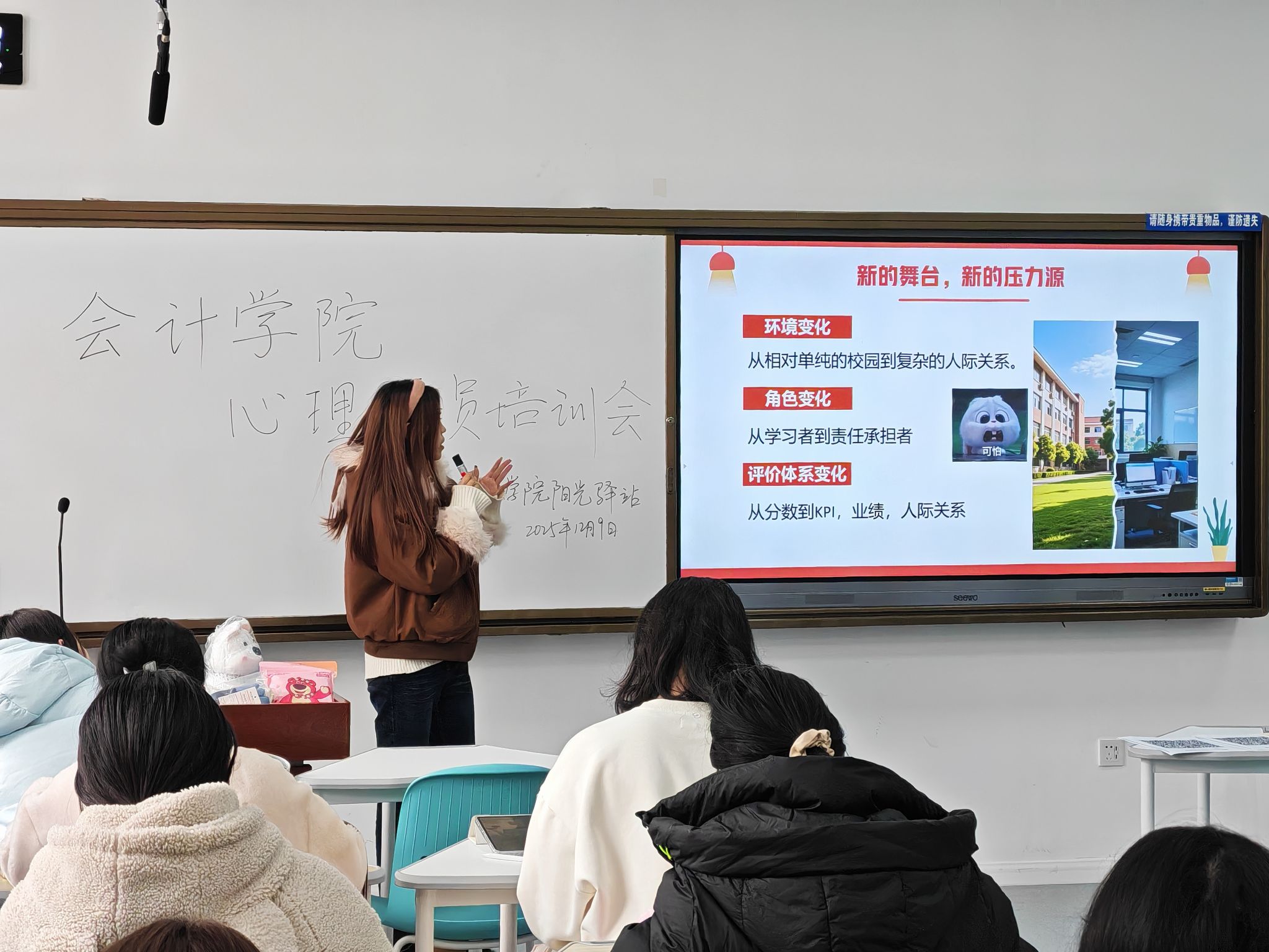 此次培训不仅让心理委员们学到了实用的心理调节和帮扶技巧,更让大家对“心灵哨兵”的角色有了更深的理解。未来,会计学院阳光驿站将持续开展多元心理活动,助力大家在守护自我与同学心理健康的同时,为未来职场生活筑牢心理基础,携手打造有温度、有归属感的校园成长环境。
