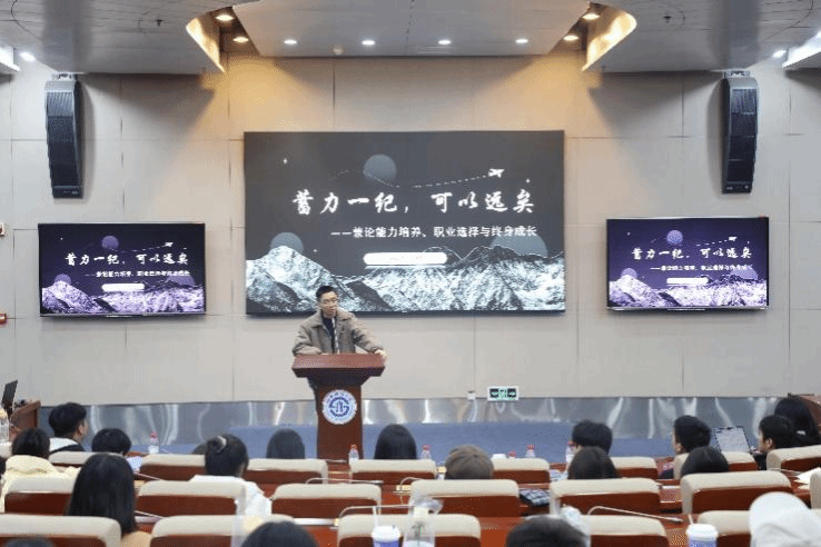 在素养与职业发展方面,学长总结出优秀青年的三项核心素养:清醒认知目标、积极主动行动、善于提炼实践方法。他强调“实践永远排在第一顺位”,指出专业能力需在真实场景中激活,而专业素养、体系理解力与服务意识融合而成的“公共治理能力”,是当代大学生的必备素质。
