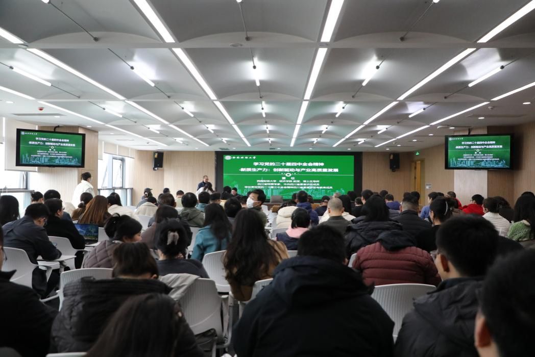 12月9日下午,会计学院于诚正楼720会议室召开政治理论学习会,贯彻落实党的二十届四中全会精神,聚焦新质生产力与高质量发展主题,并结合学院工作实际开展,邀请西南财经大学经济学院教授、博士生导师、中共四川省委宣讲团成员、学习贯彻党的二十届三中全会精神四川省委宣讲团专家库成员、学校“经世湃声”专家组成员苗壮老师围绕《新质生产力:创新驱动、改革深化与产业高质量发展》开展专题讲座。会计学院和财税学院全体教职工参加学习,学院党委书记刘晓彬主持会议。