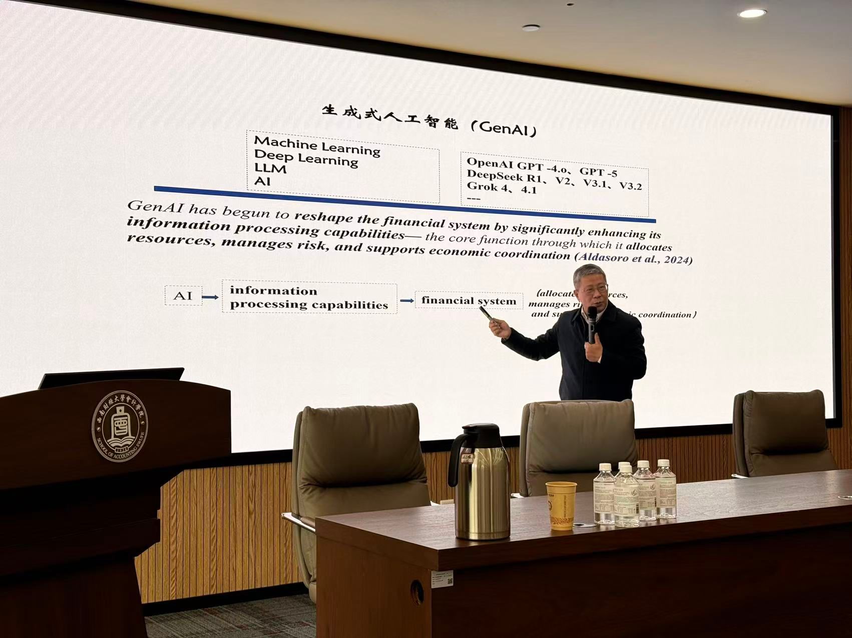讲座中,魏教授结合自身研究成果与行业前沿动态,展开深度分享。在习近平经济思想融入方面,他提出要立足财经专业特色,将新发展理念、高质量发展等核心思想与会计财务研究、ESG 报告等教学内容有机结合,明确课程思政与专业教学的融合路径。在教育数字化领域,他聚焦 AI 技术在会计财务领域的应用主线,详解 AI 作为分析工具、外部冲击、经济代理人的三大视角,以及其在信息分配、投资者行为塑造等方面的四项核心功能,建议学院加快财经类数字课程、虚拟仿真实践资源开发,推动 AI 技术与教学科研深度融合。在院级质量保障体系建设上,他参考 “目标 - 标准 - 诊改” 闭环模式,强调要细化专业、课程、教师、学生层面的质量标准与监测机制,尤其要关注 AI 技术应用带来的教育教学变革,完善相应质量评价体系。