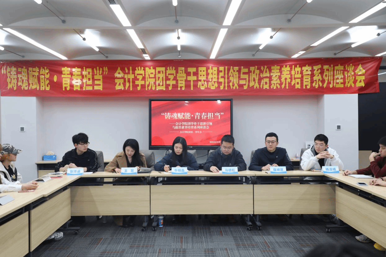 12月16日下午15时,会计学院团学骨干思想引领与政治素养培育第一期座谈会在诚正楼650会议室召开。座谈会由学院团委书记王慧主持,国际商学院团委副书记牛晓晶、校团委兼职副书记马德彪、研究生会执行主席宿焯恩受邀参会,学院团委指导老师张博涵、杨凌峰出席会议。