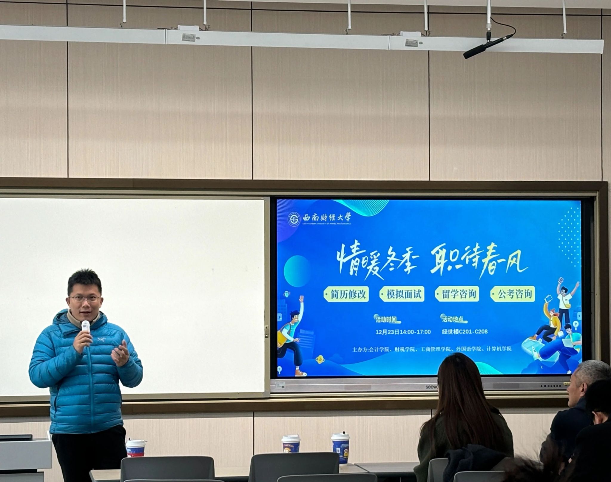 为助力学子明晰职业方向、提升求职竞争力,12月23日下午,财政税务学院、会计学院、工商管理学院、外国语学院与计算机与人工智能学院共同打造的“情暖冬季,职待春风——大型求职OPEN DAY系列活动”在经世楼教室圆满举行。活动涵盖辅导讲座、专业咨询、实操模拟等多个板块,为不同需求的学子提供了全方位、精准化的就业支持。
