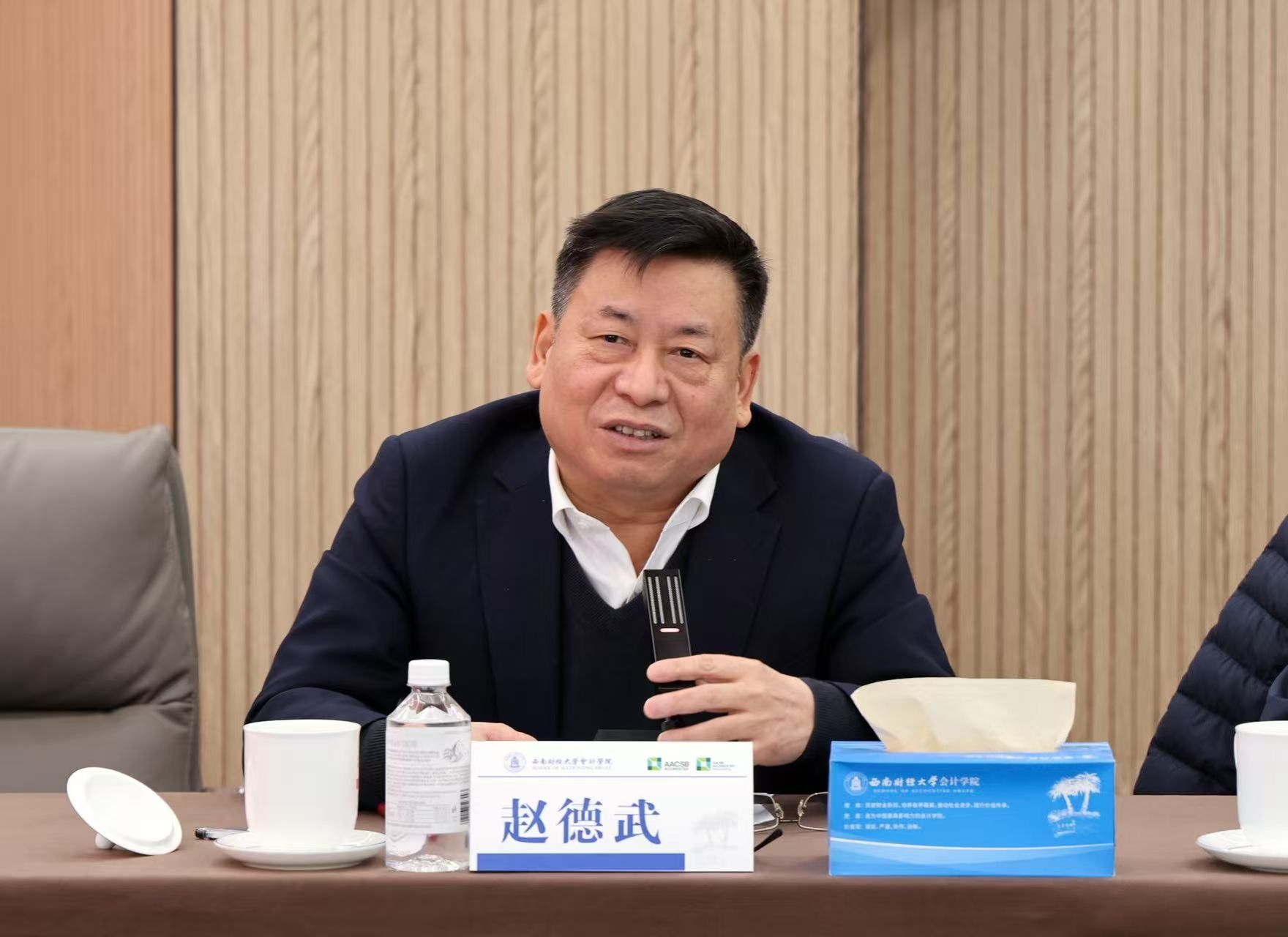 岁序更替,华章日新。在国家全面开启“十五五”规划谋篇布局、高等教育强国建设迈向新征程的关键时期,西南财经大学会计学院也积极响应学校党委战略部署,主动谋划、乘势而上,于1月20日上午在诚正楼720会议室成功举行“十五五”发展规划咨询会。西南财经大学原党委书记赵德武、校友代表昆吾九鼎投资管理有限公司董事长吴刚、西藏润富空气处理有限公司董事长周山清,合作伙伴代表上海高顿教育科技有限公司校企合作事业部西部区总监李昌鑫、天健会计师事务所四川分所高级合伙人、四川分所副总经理李元良及会计学院全体班子成员和相关工作负责人齐聚一堂,共商发展大计。