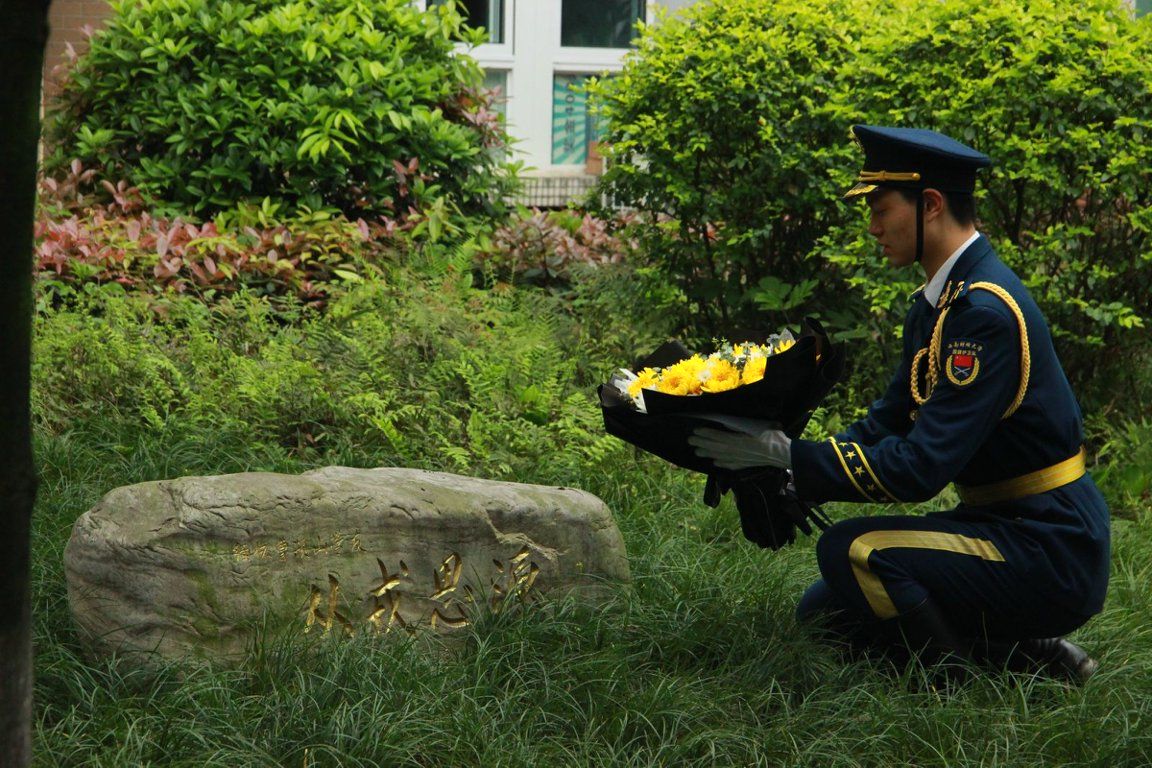 国旗护卫队迈着铿锵有力的步伐,向象征烈士精神的“英雄树”敬献花束,全体人员行注目礼。花束映照初心,身姿传递壮志,寓意烈士精神如青松常青,永远激励西财青年奋勇前行。师生们依次向英雄敬献鲜花,以实际行动告慰英烈,表达深沉的追思与怀念。