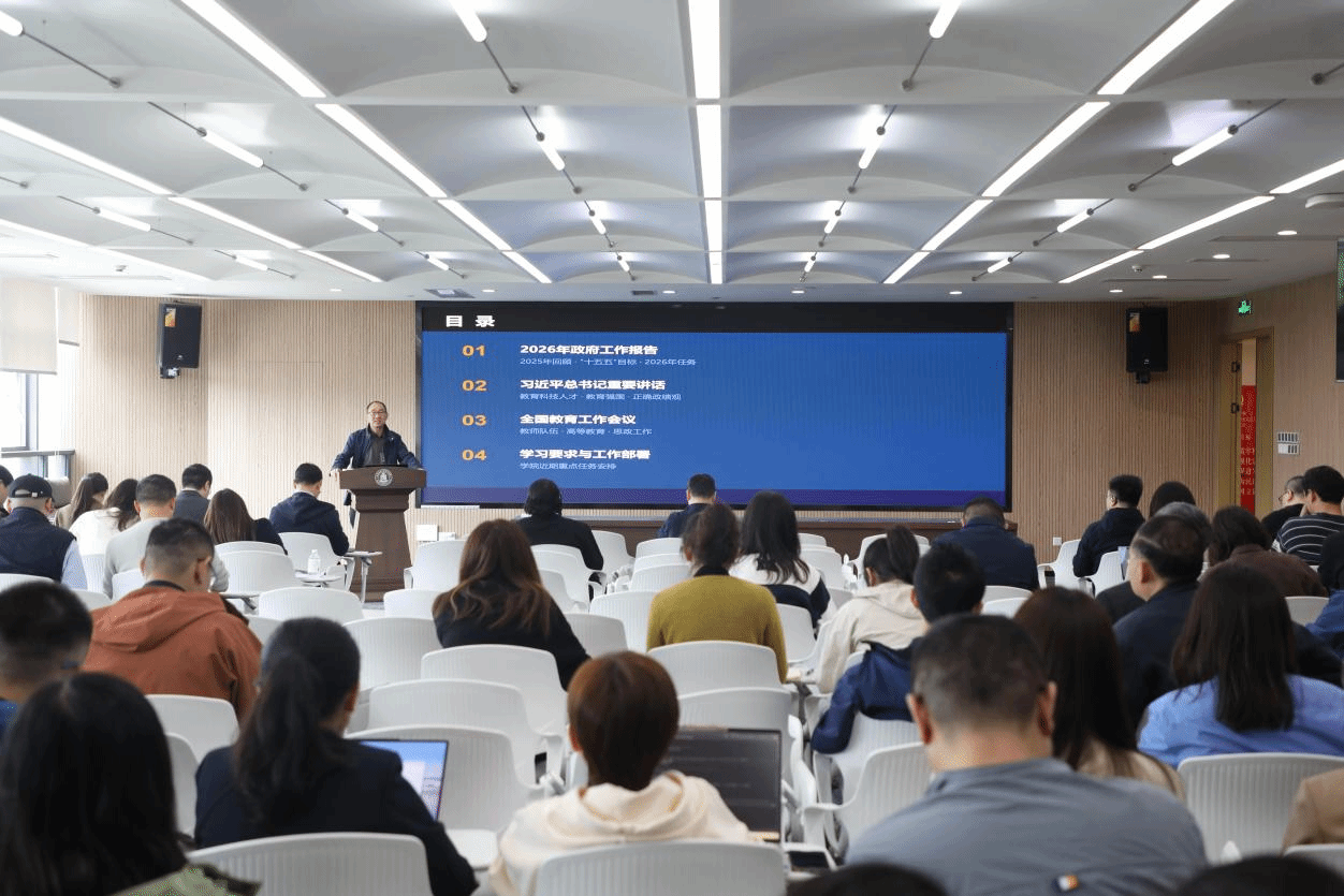 会议传达了教育领域相关部署,要求学院进一步深化教育教学改革,稳步提升人才培养质量,持续加强师德师风与师资队伍建设,健全家校社协同育人体系,推动教育、科技、人才一体化发展。