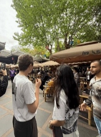 随后,一行人前往人民公园,体验盖碗茶与成都传统茶文化;在宽窄巷子,感受川西民居建筑与老城历史风貌,在轻松的行走中了解巴蜀文化、体验蓉城市井烟火,增进彼此了解与友谊。