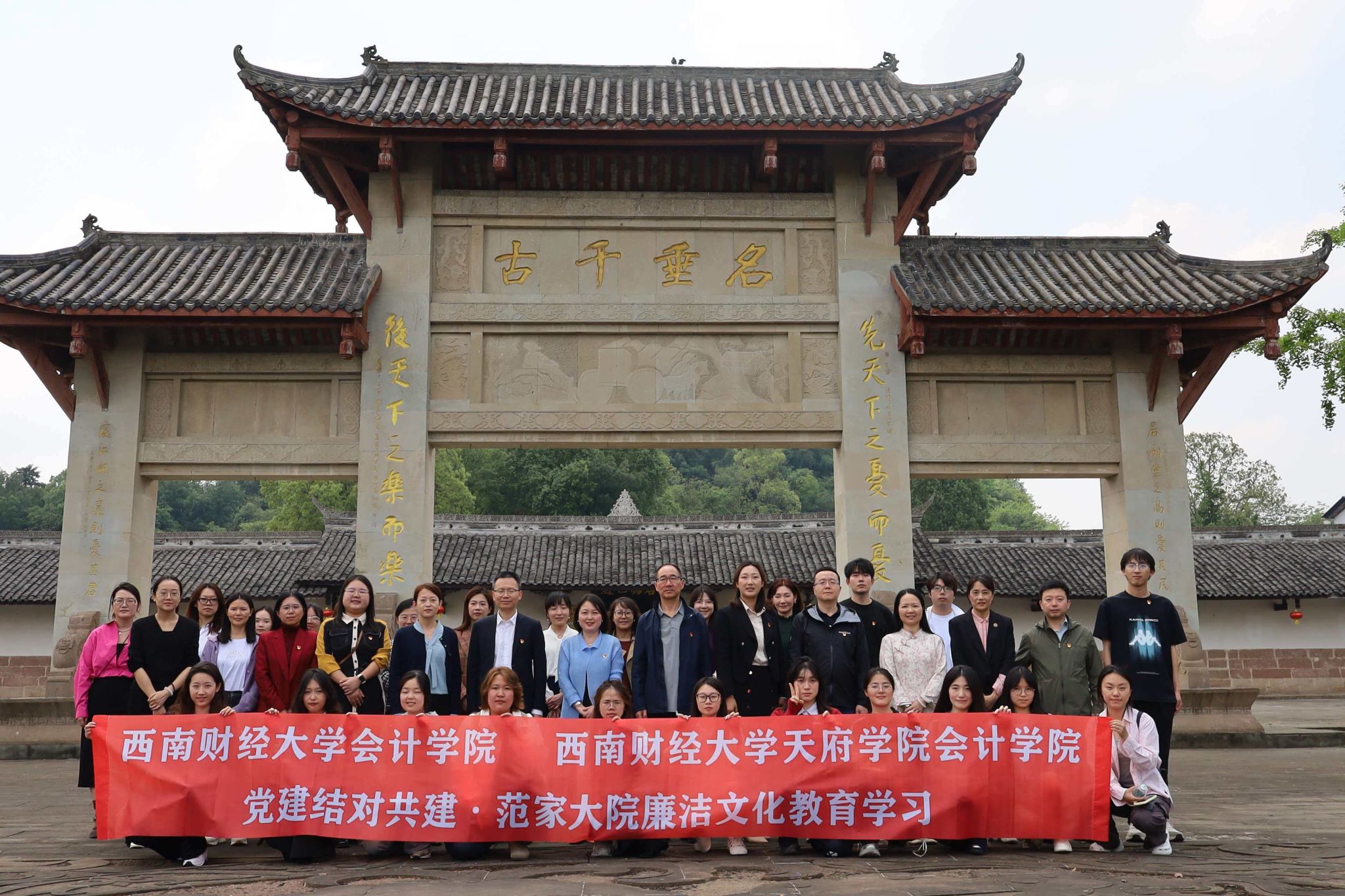 下午参观见学,两院师生党员代表走进四川省廉洁文化基地范家大院,开展沉浸式廉政教育,从范仲淹“先忧后乐”的家国情怀与“廉俭绍家风”的治家准则中汲取精神力量,厚植爱国爱党情怀、筑牢廉洁思想根基。
