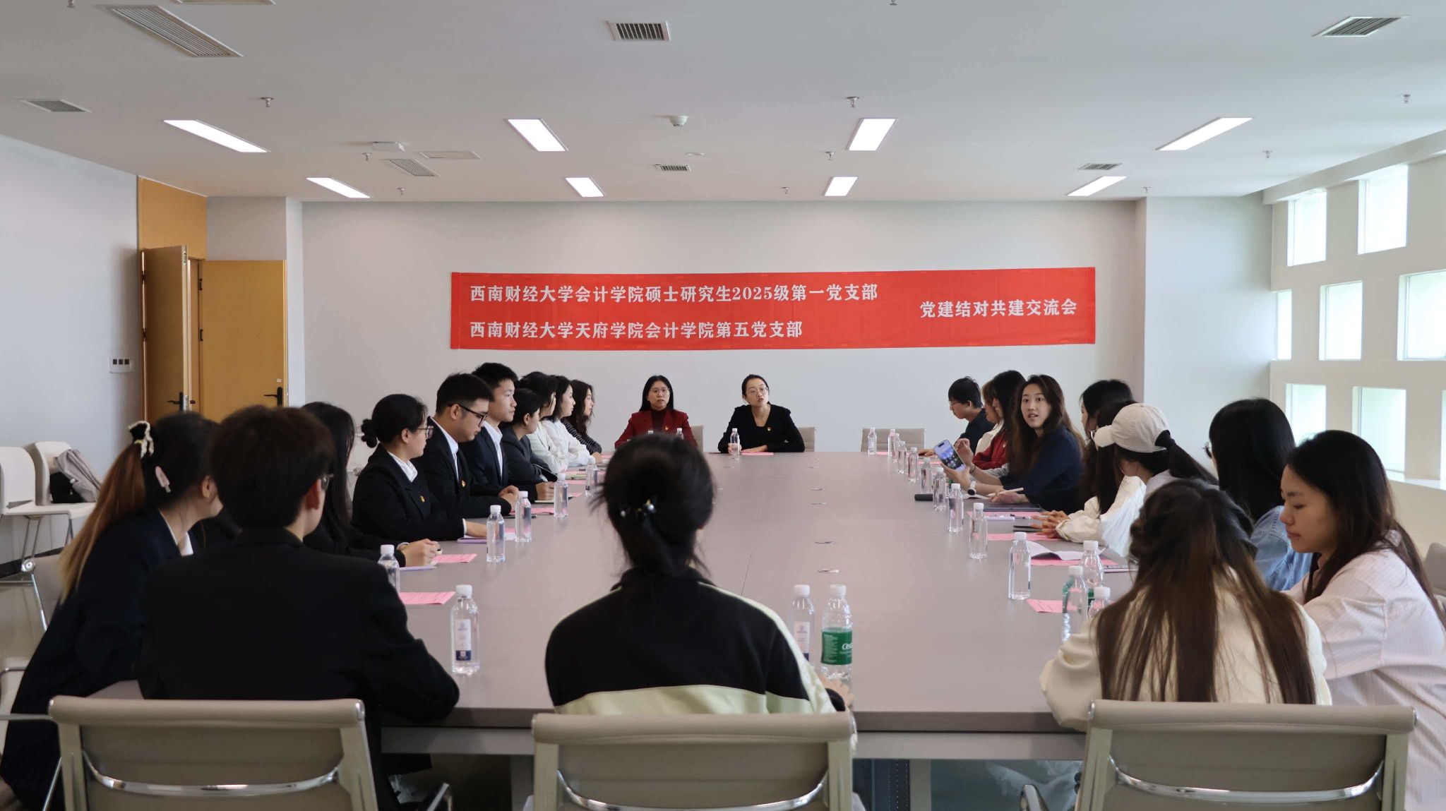 同时,西南财经大学会计学院硕士研究生2025级第一党支部与西南财经大学天府学院会计学院第五党支部开展党建结对共建交流会。围绕支部建设、学风建设、考研备考等话题展开,共同搭建学习型党支部建设。