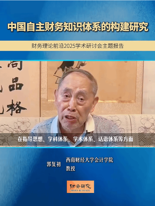 2025年8月15日,在中国财政杂志社与厦门国家会计学院联合主办的“财务理论前沿2025学术研讨会”上,西南财经大学会计学院郭复初教授以“中国自主财务知识体系的构建研究”为题,指出应以习近平总书记在哲学社会科学工作座谈会上的重要讲话精神为指引,立足中国、贯通古今中外,系统构建具有中国特色的自主财务知识体系。