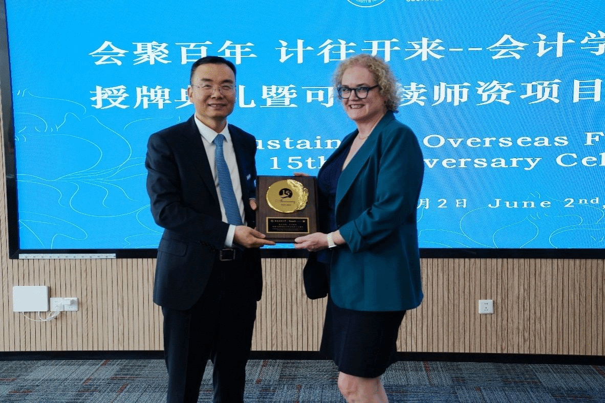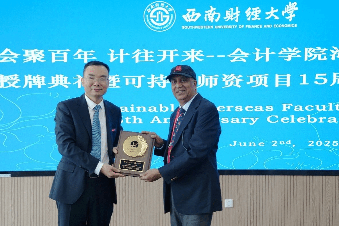 On the morning of June 2, the delegation participated in the "Assembling for a Century, Counting for the Future: Awarding Ceremony for Overseas Partners of the School of Accounting and the 15th Anniversary Celebration of the Sustainable Overseas Faculty Plan." The ceremony was attended by Ma Yongqiang, a Member of the Standing Committee of the CPC Committee and Vice President of SWUFE, Huang Haibo, Director of the Human Resource Department, Tan Hongtao, Director of the Audit Department, Wang Yeting, Director of the Office of International Exchange and Cooperation, SOA's leadership team, and more than 20 faculty representatives from the Sustainable Overseas Faculty Plan. Vice President Ma Yongqiang, Vice President Mary Gorman, Director Suresh Govindaraj, and Professor YE Jianming each delivered speeches, reviewing the development of the Sustainable Overseas Faculty Plan since its launch in 2010. Over the past fifteen years, the program has selected more than 80 outstanding SWUFE students to pursue doctoral studies abroad in fields such as finance, accounting, and accounting information systems (AIS). Upon completing their studies, many have returned to SWUFE, emerging as promising scholars and key educators who have contributed to the university’s academic development with their international, cross-cultural perspectives. Ma Yongqiang awarded the commemorative plaques of "Pursuing Excellence, Practising Perseverance: The 15th Anniversary of the Sustainable Overseas Faculty Plan" to representatives from CUNY Baruch College and Rutgers University, and the "Ten Years of Glorious Chapters in the SWUFE-Baruch 3+1 Program: Spanning Ten Years and Writing a New Chapter Together" to CUNY Baruch College. Afterwards, alumni of the Sustainable Overseas Faculty Plan held an association event.
