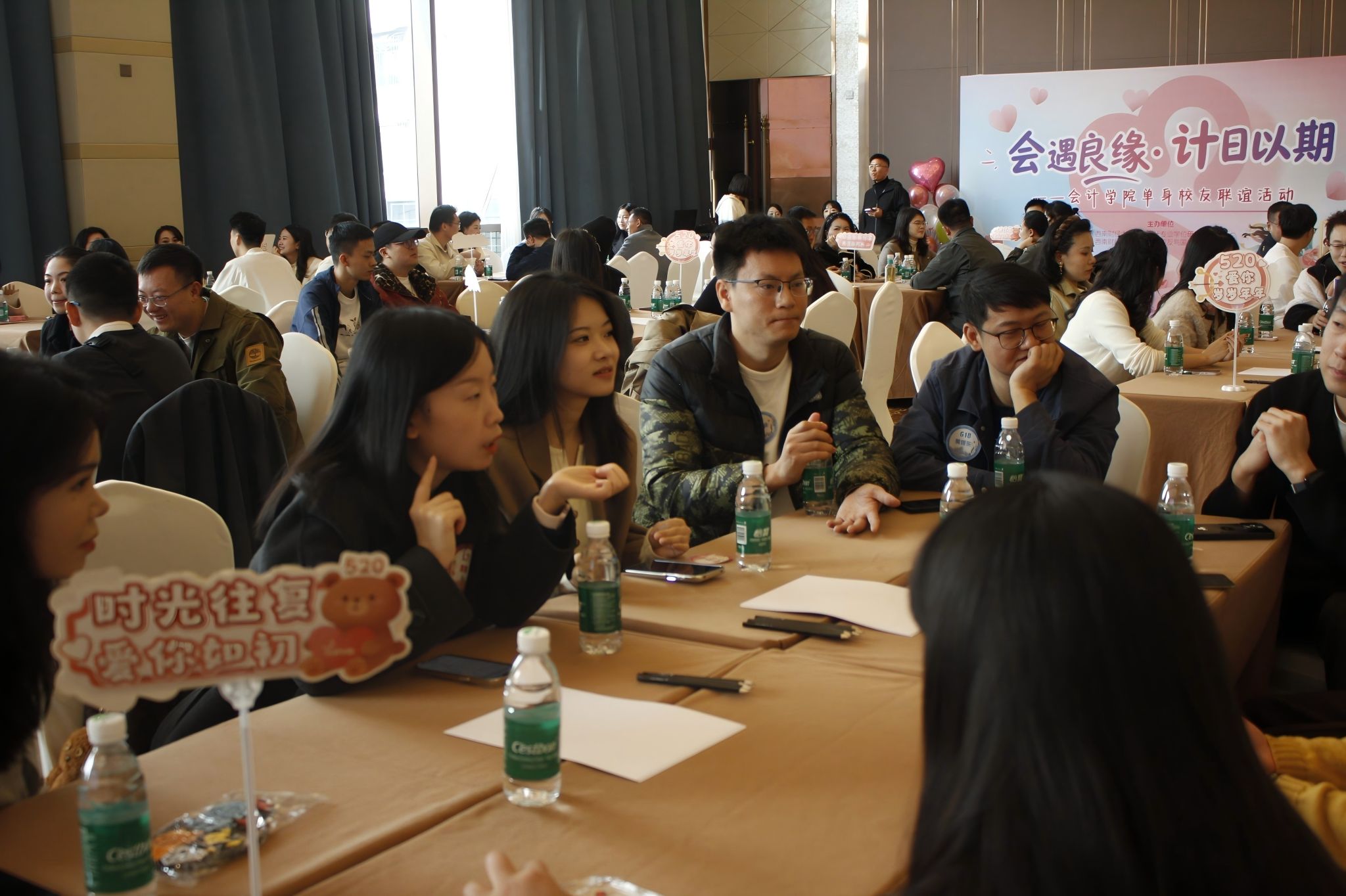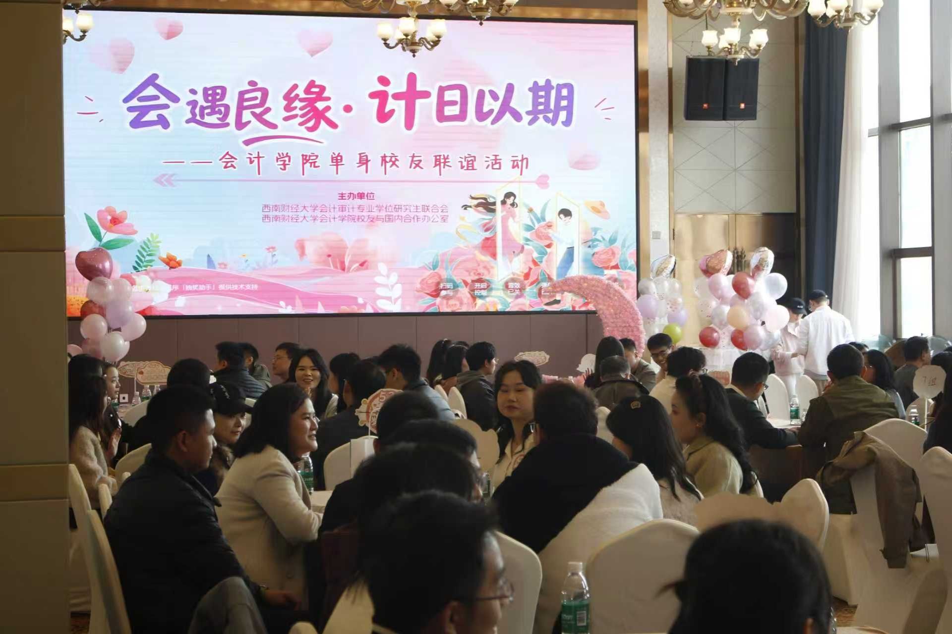 11月23日下午,成都高逸金沙酒店暖意融融,西南财经大学会计学院 “会遇良缘,计日以期”单身校友联谊活动在此温情绽放。这场专为学院单身校友量身定制的高品质社交盛宴,既是重温青葱岁月、共叙同窗情谊的温暖之约,更是邂逅怦然心动、拓展优质人脉的美好契机,让校园记忆与浪漫期许在秋日光花园畔悄然交汇。学院党委副书记杨长虹、事务主任吴颖洁、校友与国内合作办公室丁泽宁等领导老师温情莅临,百余位会计学院校友及合作单位嘉宾伙伴齐聚一堂,在欢声笑语中共赴这场满载温情的青春之约。活动由校友与国内合作办公室任虹、何振雄两位老师联袂主持,全程暖意流淌、氛围醇美。