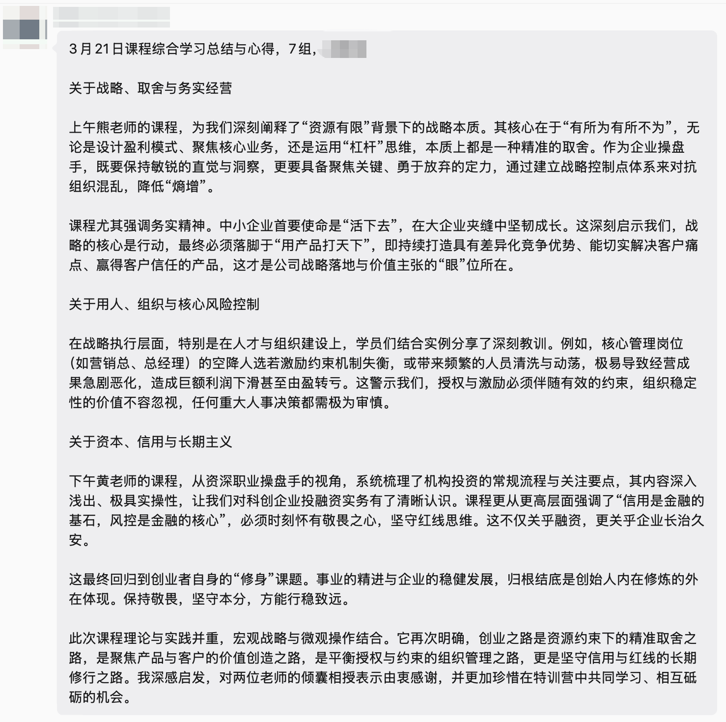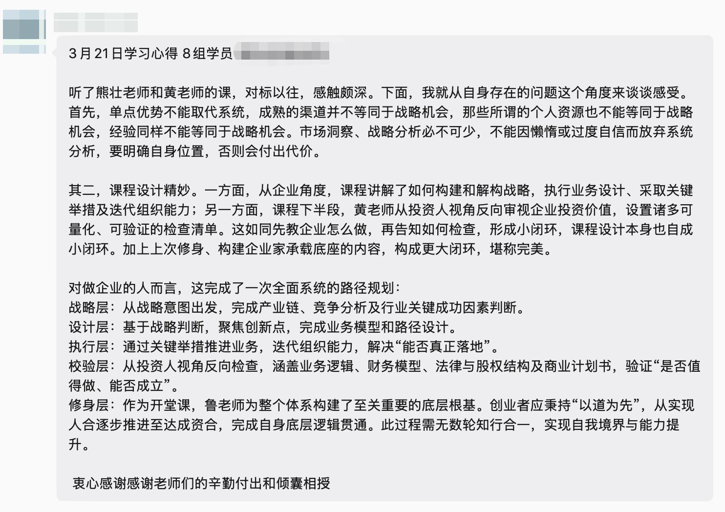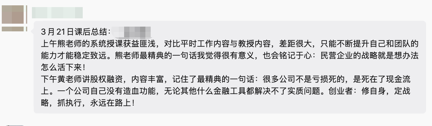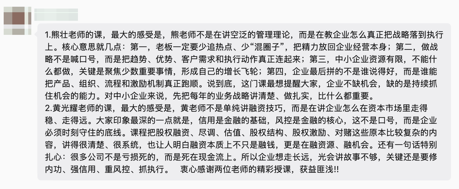 学员们纷纷感悟:经营企业不能只埋头做产品,更要抬头看方向、系统建能力。