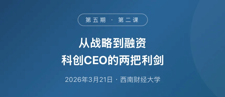 春分已过,万物生长。2026年3月21日,西南财经大学成渝双城经济圈科创CEO成长特训营第五期迎来第二次课程。如果说第一课是修身立道、凝聚人心,那么这一课便是亮剑实战——从企业增长的底层逻辑,到资本运作的实操路径,两位重量级导师带领学员完成了一场从"道"到"术"的深度跃迁。